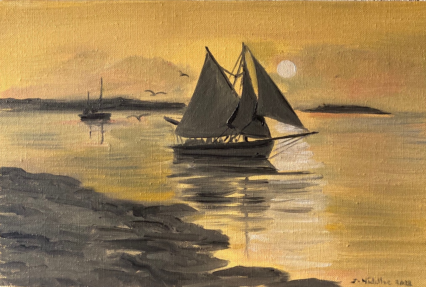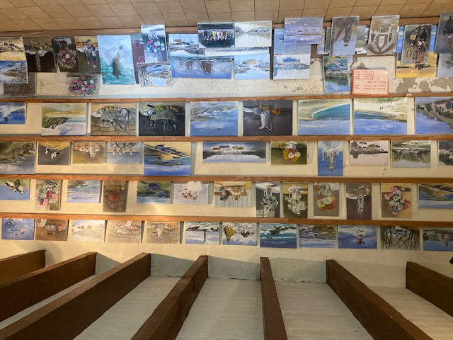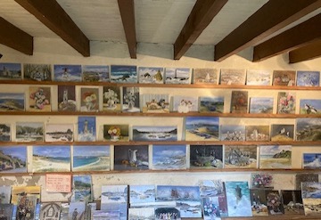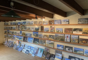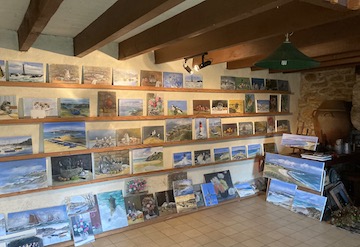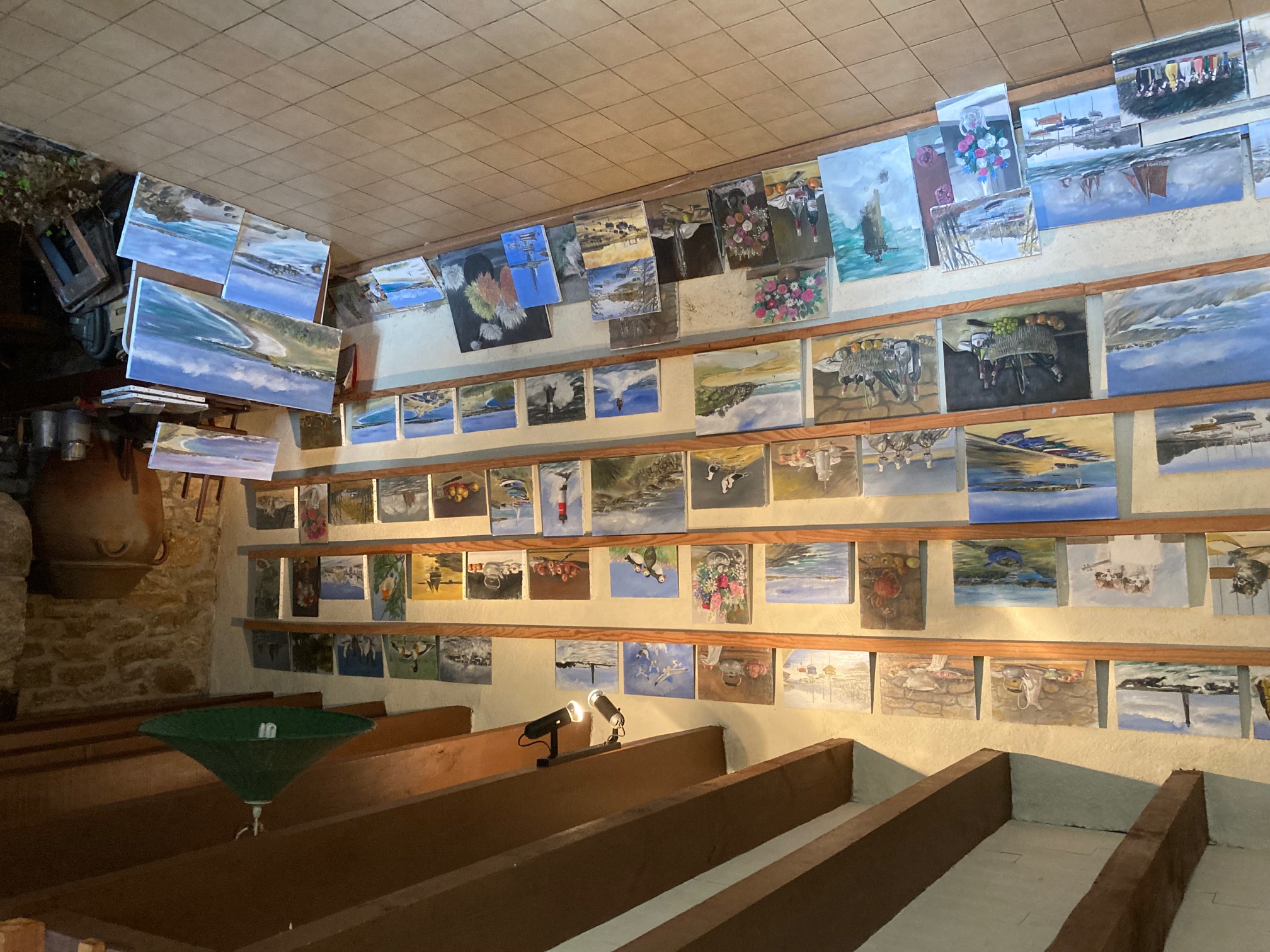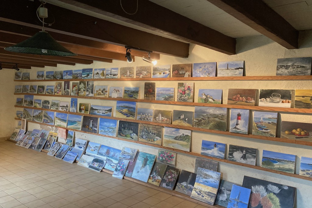 Dans son authentique penty Joseph expose ses dernières créations. Les thèmes sont récurents et les vues très semblables d'une toile à l'autre. Joseph peint de mémoire et s'aide de quelques photos.
